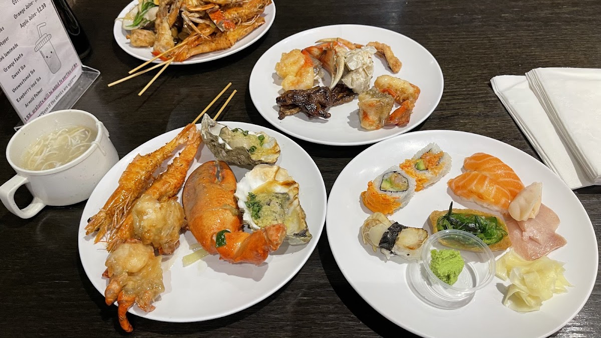 Heard a lot about this AYCE seafood restaurant. We went for lunch and we lucked out as there was plenty of lobster and crab legs. Very nice variety of dishes. Place seats 280 people so there is plenty of space. My favorite was the sashimi and the crab legs however I did eat a lot of lobster . Had the red bean and butter pecan ice cream for desert. We were stuffed. I say check it out.