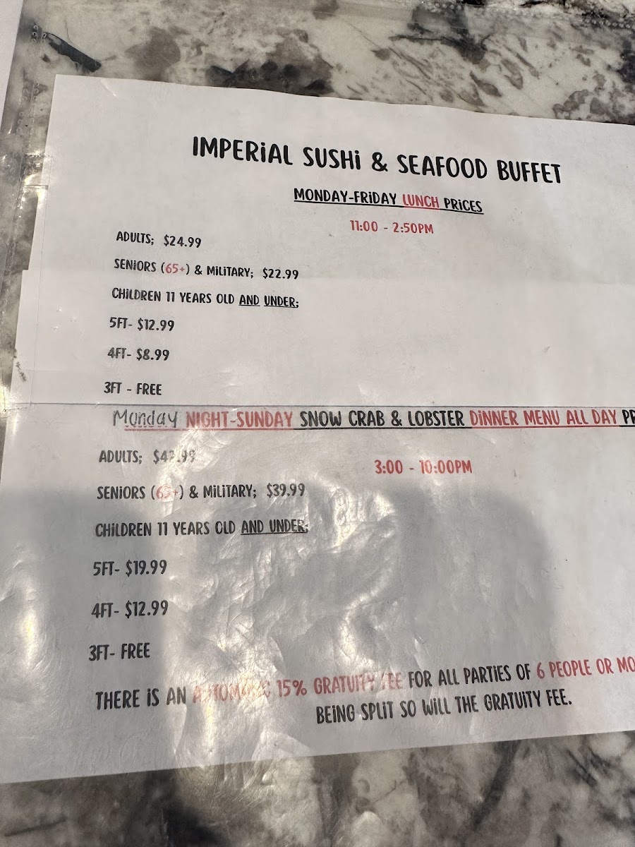 The menu at Imperial Sushi Seafood Buffet offers a relaxed and approachable variety of dishes centered around fresh seafood and classic sushi selections. It's the kind of spread that suits everything from casual weekday lunches to leisurely weekend gatherings, where guests can enjoy a bit of everything at their own pace.